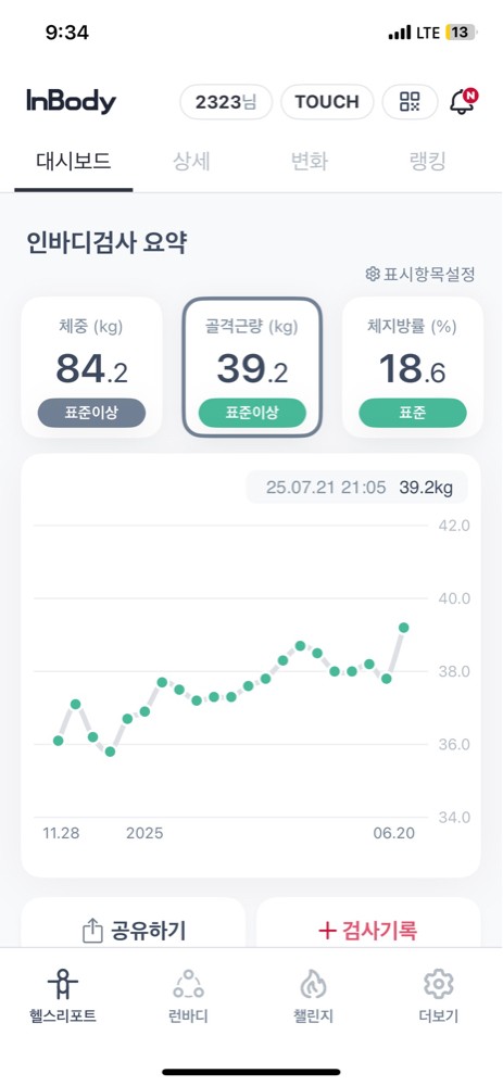 근육이 잘 안붙는 스타일이라 걱정했는데, 매주 인바디로 몸변화 체크하며 식단 조절(먹어야할 단백질 탄수화물 지방 g 체크해주십니당)해주셔서 근육이 2kg 이나 늘었네요.
