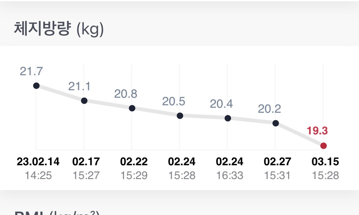 일주일만에 체지방 2.5키로 뺀 제 자신을 보고 또 추가등록을 해서 열심히 다니고 있습니당
