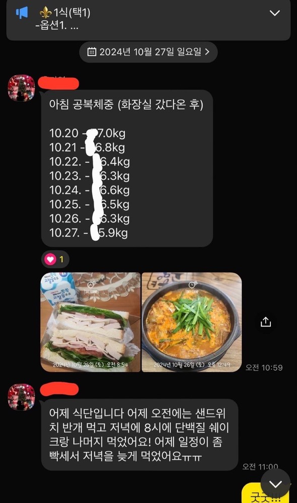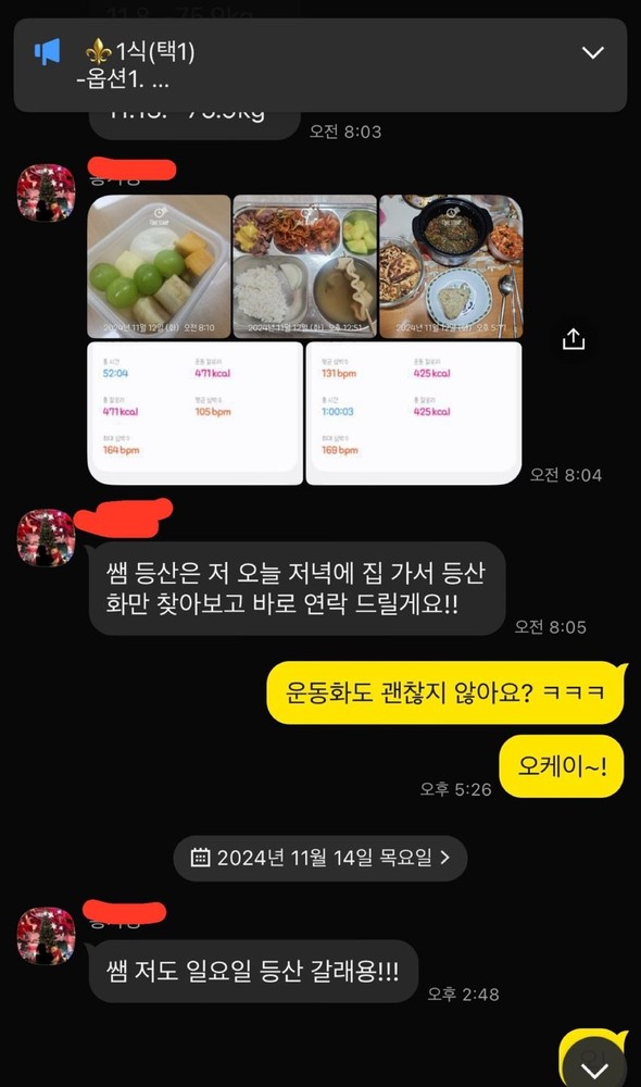 궁금한 부분을 여쭤보면 항상 자세하게 설명해주십니다 특히 운동루틴 관련해서 설명해주실 때 정말 감동이였어용..🥹(3번째 사진)