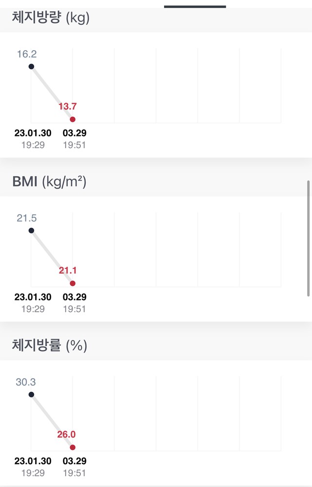 체지방 22에서 18까지 다운되시고 16퍼센트 고지가 코앞이네요! 이대로 초가공식품 밀가루 통제하며 16까지 화이팅입니다:) 운동 너무 잘하셔서 곧 졸업 하실 것 같습니다 ㅎㅎ