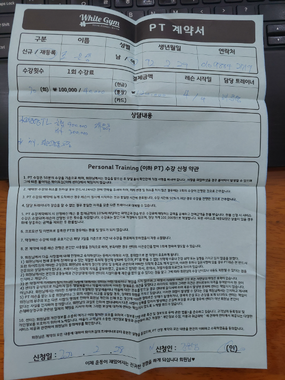 처음에는 피티 생각도 없었고 다이어트만 하려고 헬스장 갔는데 맛보기 피티때 혼자 운동하면서 느꼈던 몸의 결함들을 바로 알려주시고 맞춤 운동법도 알려주셔서 충분히 가치가 있다고 생각되어 피티 질렀구요.