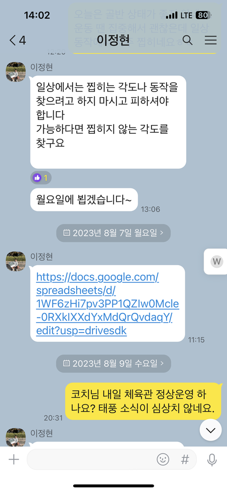 그리고 혼자서 틈틈이 할 수 있는 동작이나 궁금한 것들도 물어보면 친절하게 답변해주셔서 좋았습니다.