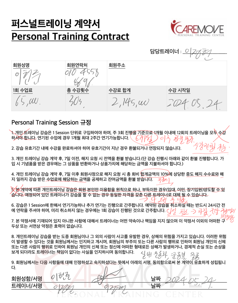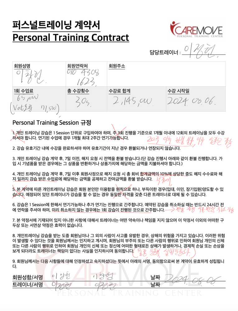 이 부분이 다른 선생님들과 정말 다르게 느껴져서 정현쌤에게 수업을 받아야겠다고 생각했고, 물론 PT 가격에 손이 덜덜 떨렸지만 건강한 몸을 위해 좋은 선생님에게 배우면 평생 유용할 것이라고 생각하니 손이 좀 덜 떨려서 30회차를 결제했습니다.