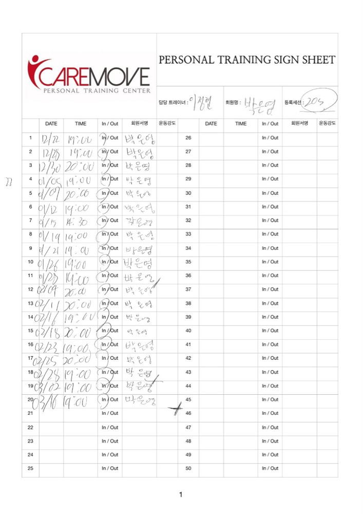 현재 처음 방문때보다 많이 좋아져서 대부분의 운동을 수행할 수 있게 된거같아요