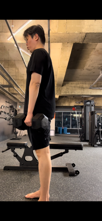 트레이너 선생님께서 각자 체형이나 느낌에 따라 편한 자세를 찾아가는 게 중요하다고 설명해 주셨어요.