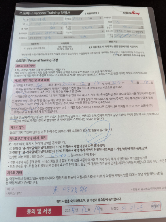 그리고 운동에 취미를 붙이고 싶어서 pt를 받았어요