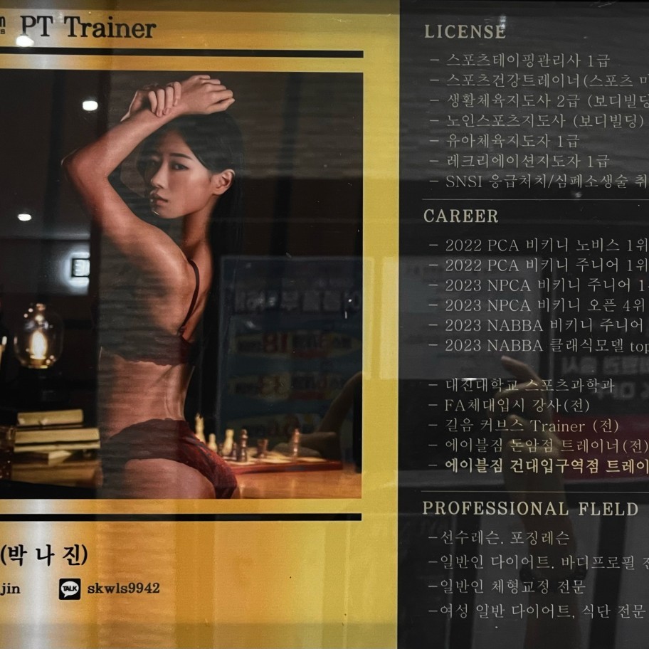 운동하러 들어가는 통로에 PT쌤들 프로필이 붙어 있는데요.