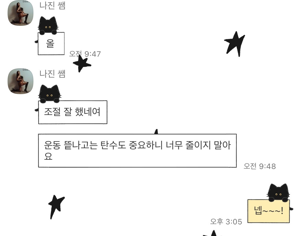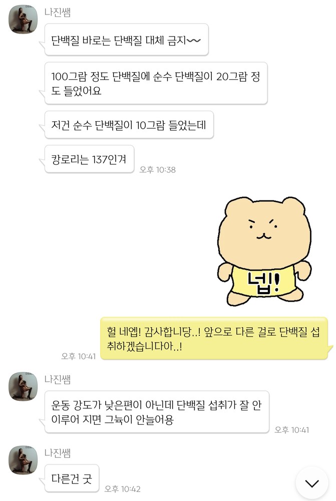 운동 뿐 아니라 식습관도 피드백을 자세히 해주세요. 일반식을 먹을 때 신경쓸 부분, 영양제 등 먹는 것까지 신경써주세요.