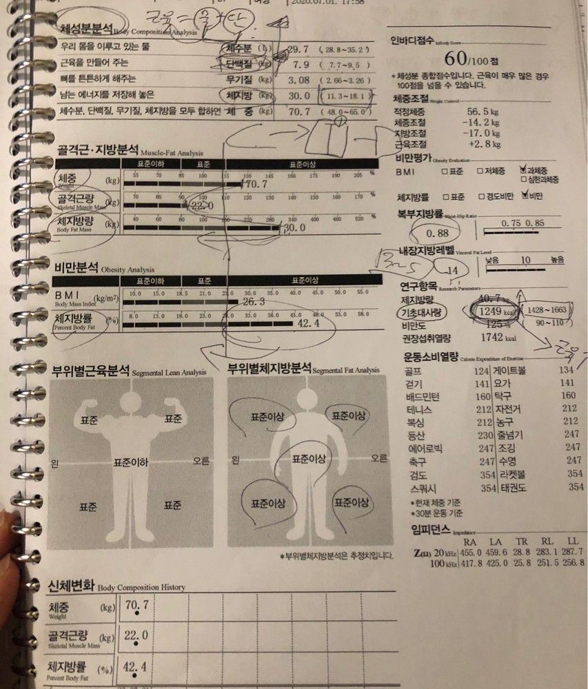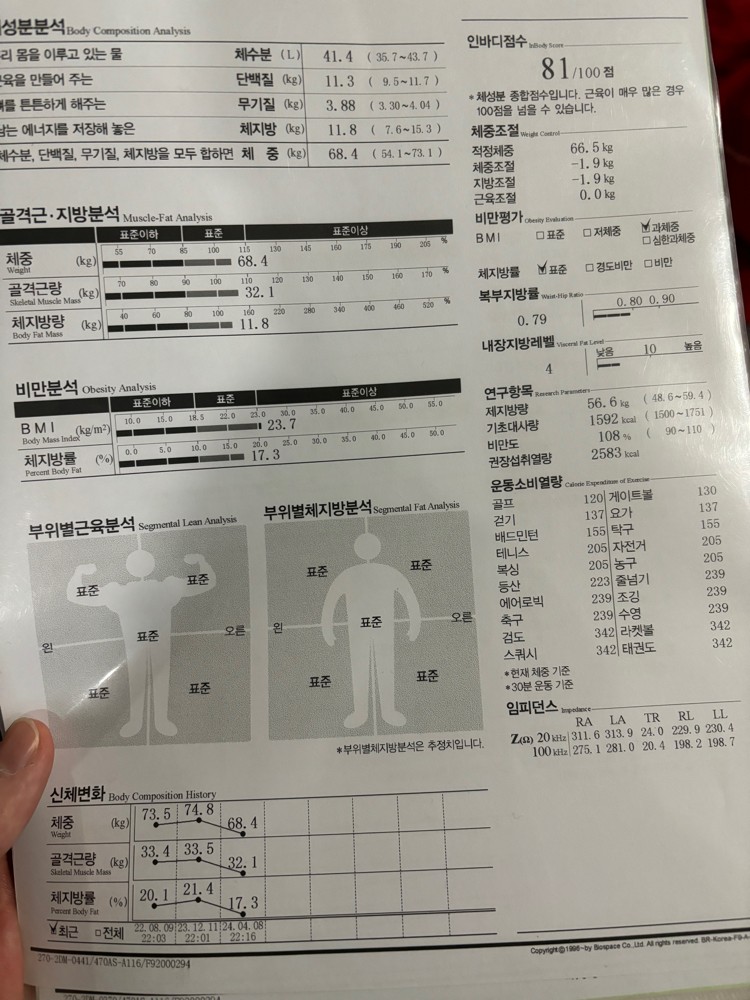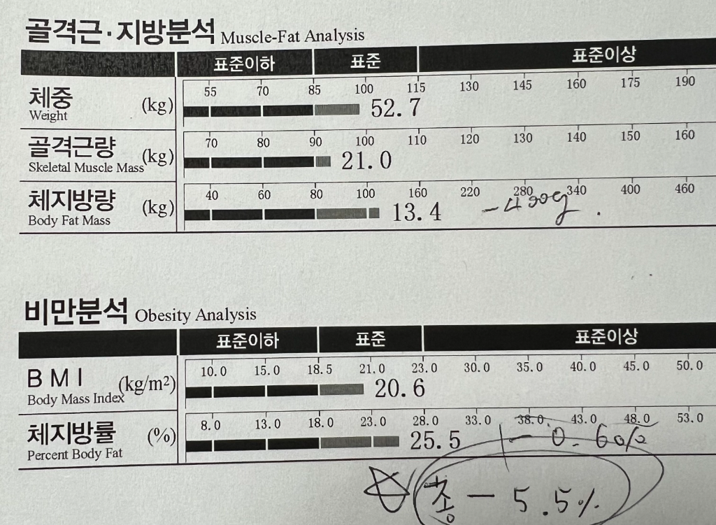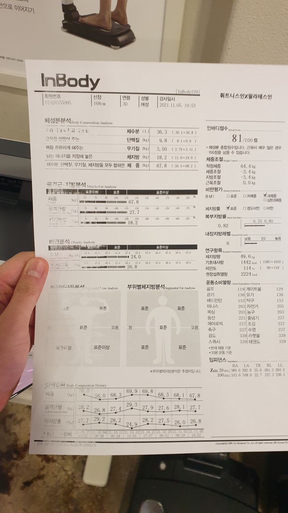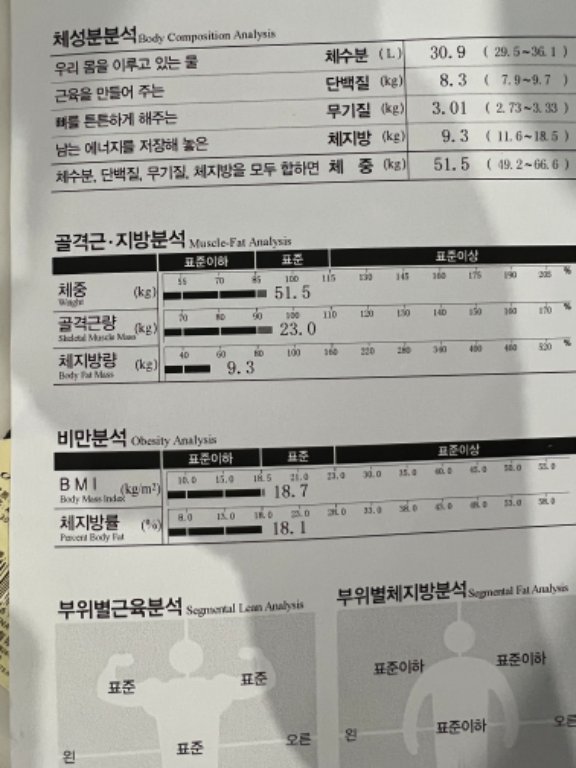 처음 저의 인바디를보자마자 “아니?! 이게모야…? 연필도 못들것같은데” 라고 놀라신 말이 기억나네옄ㅋㅋㅋ