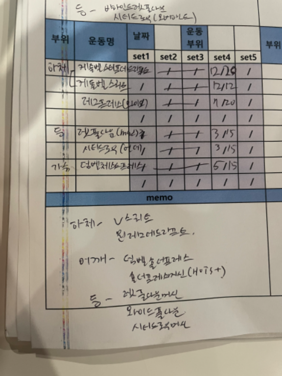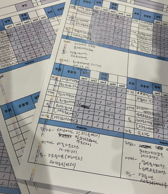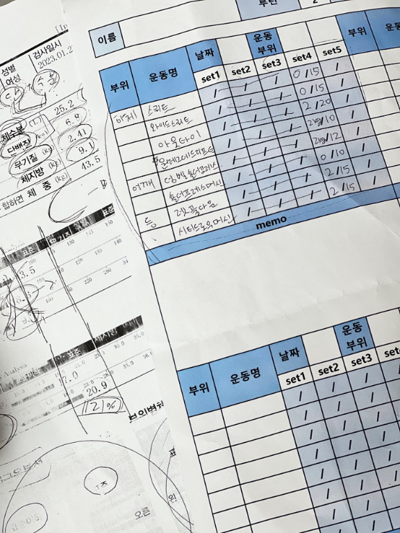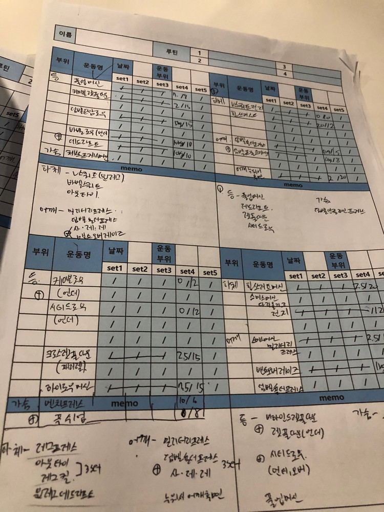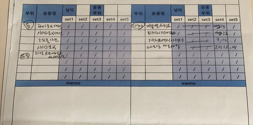 지금까지와는 정말 달랐고! 운동에 어느새 제가 흥미를 갖기시작했고 무엇보다도 저에게 가장 도움이 되었던건 운동일지였습니다!