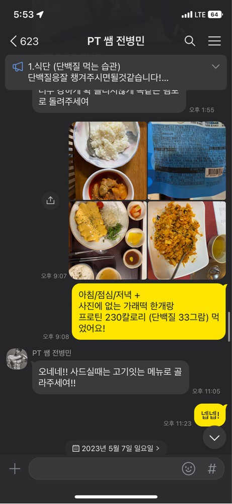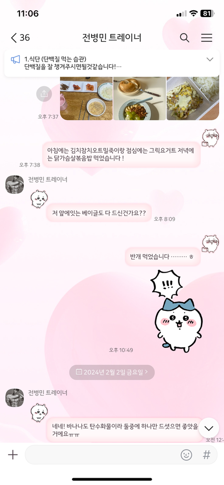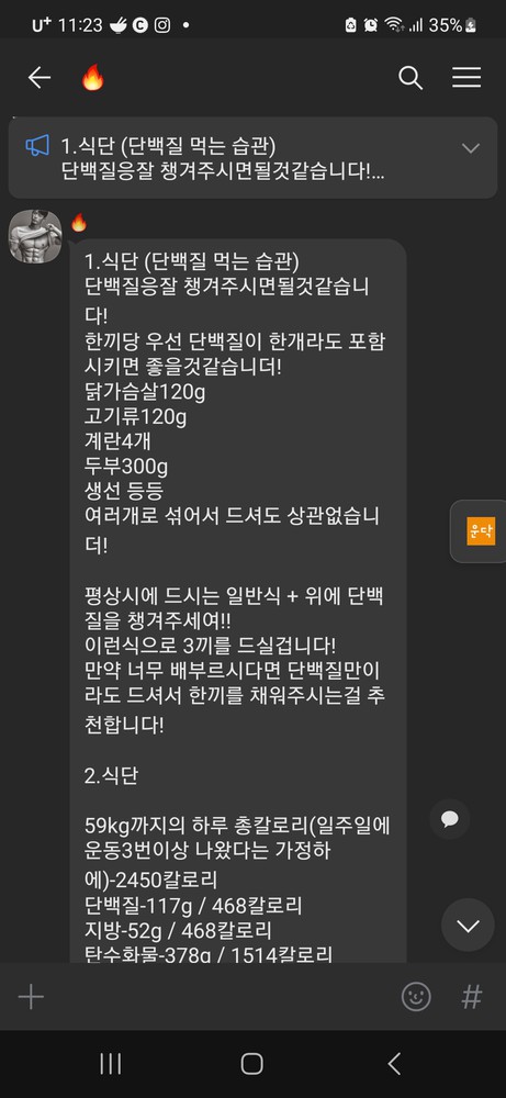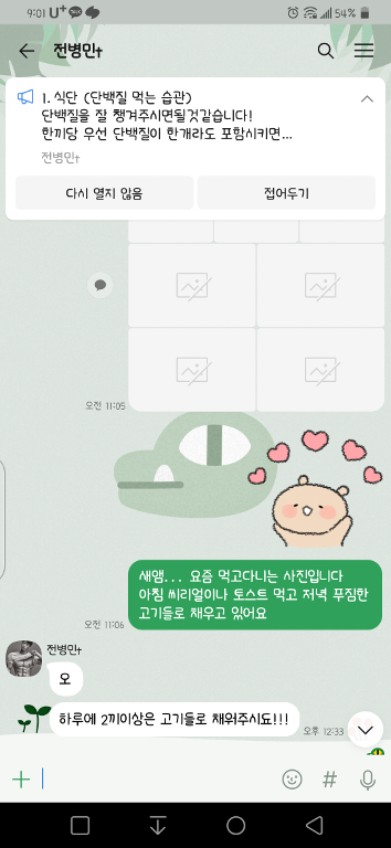 그리고 매일 하루 3번 끼니마다 식단을 체크해주시고 운동안나오면 운동해야된다고 동기부여도 해주십니다..