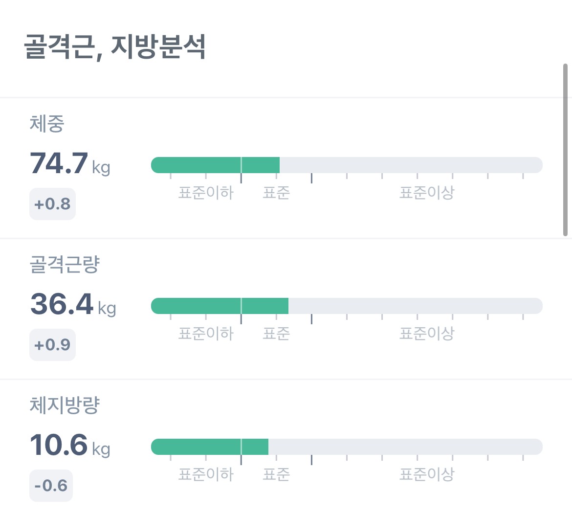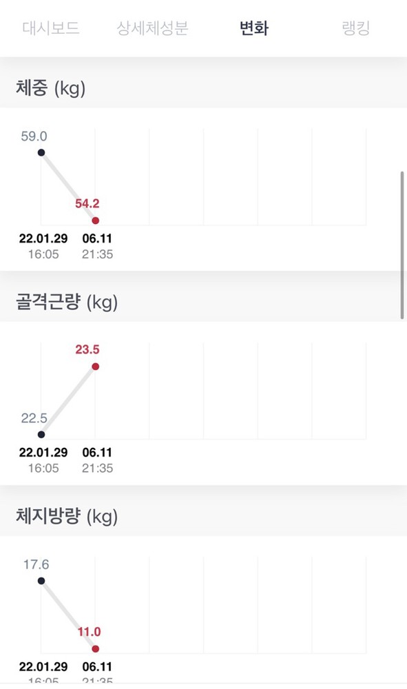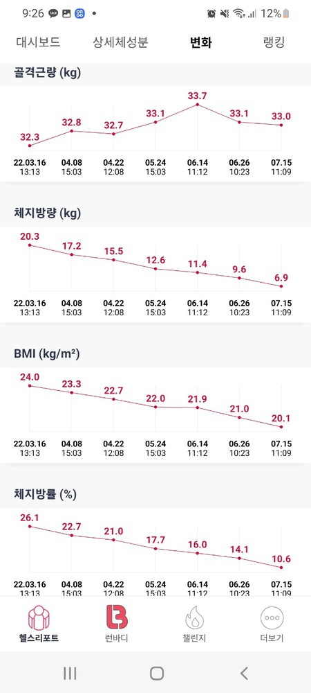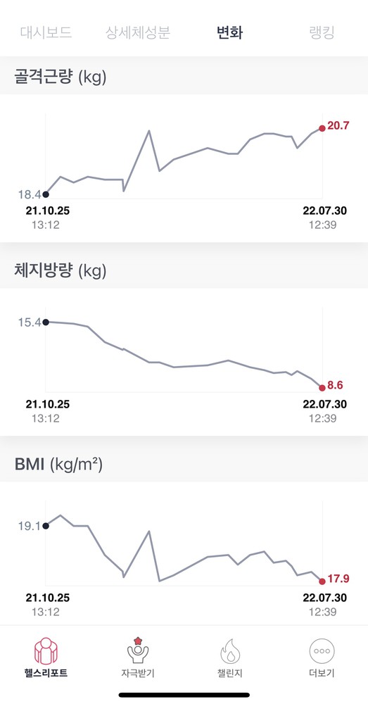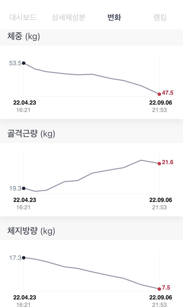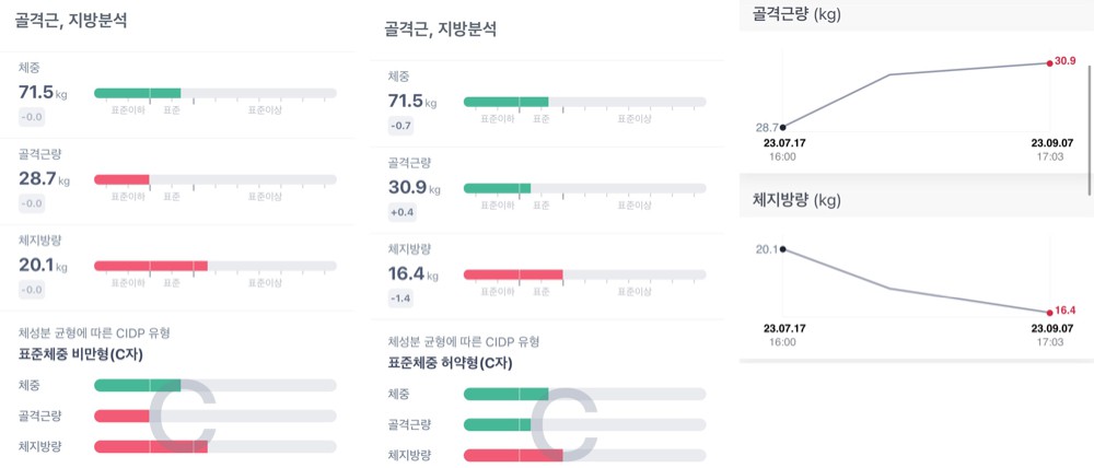 거의 2달간 12kg정도를 감량했는데 근육량은 거의 빠지지 않고 지방만 빠져서