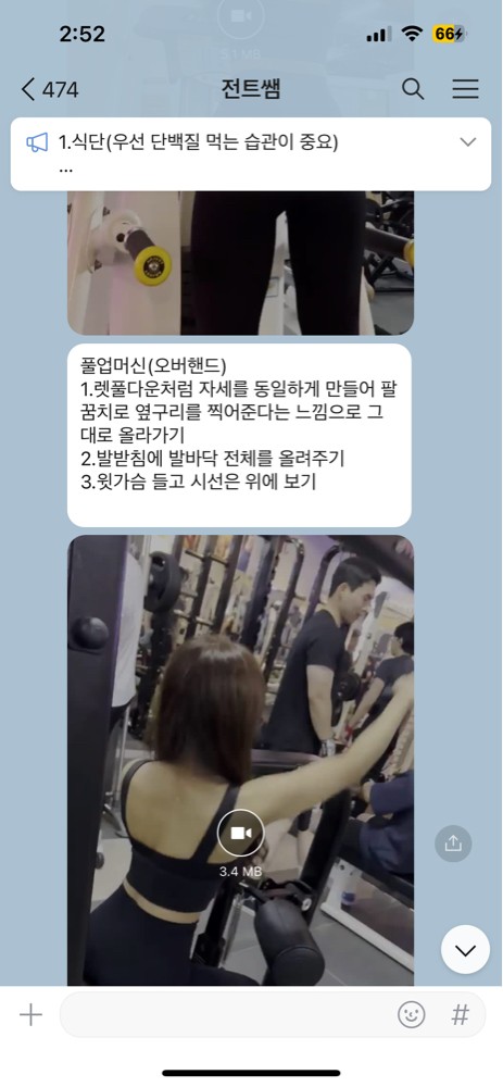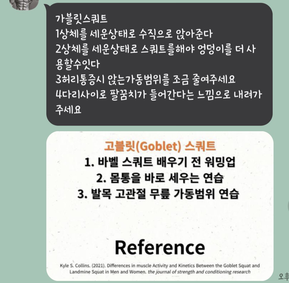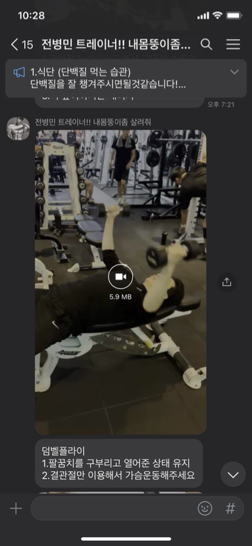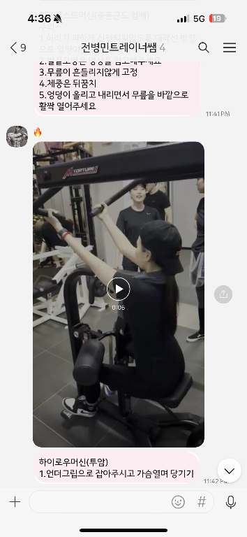 셋째, 단순히 운동법을 알려주시는 것에 그치지 않고 수업 끝나고 해볼 운동 숙제도 내주셨고 수업 후 배운 운동 동작을 영상과 더불어 설명도 보내주십니당!
