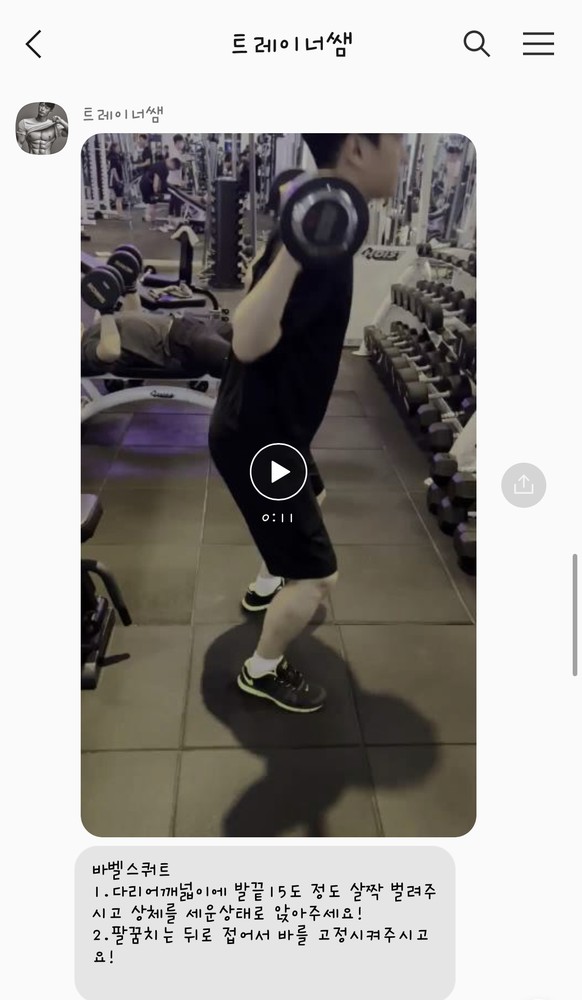 제가 가슴운동 자극을 잘 못느낀다고하니깐 직접 영상으로 찍어주셔서 가슴의 움직임이라든지 디테일한 부분까지 설명해주셨었습니다..