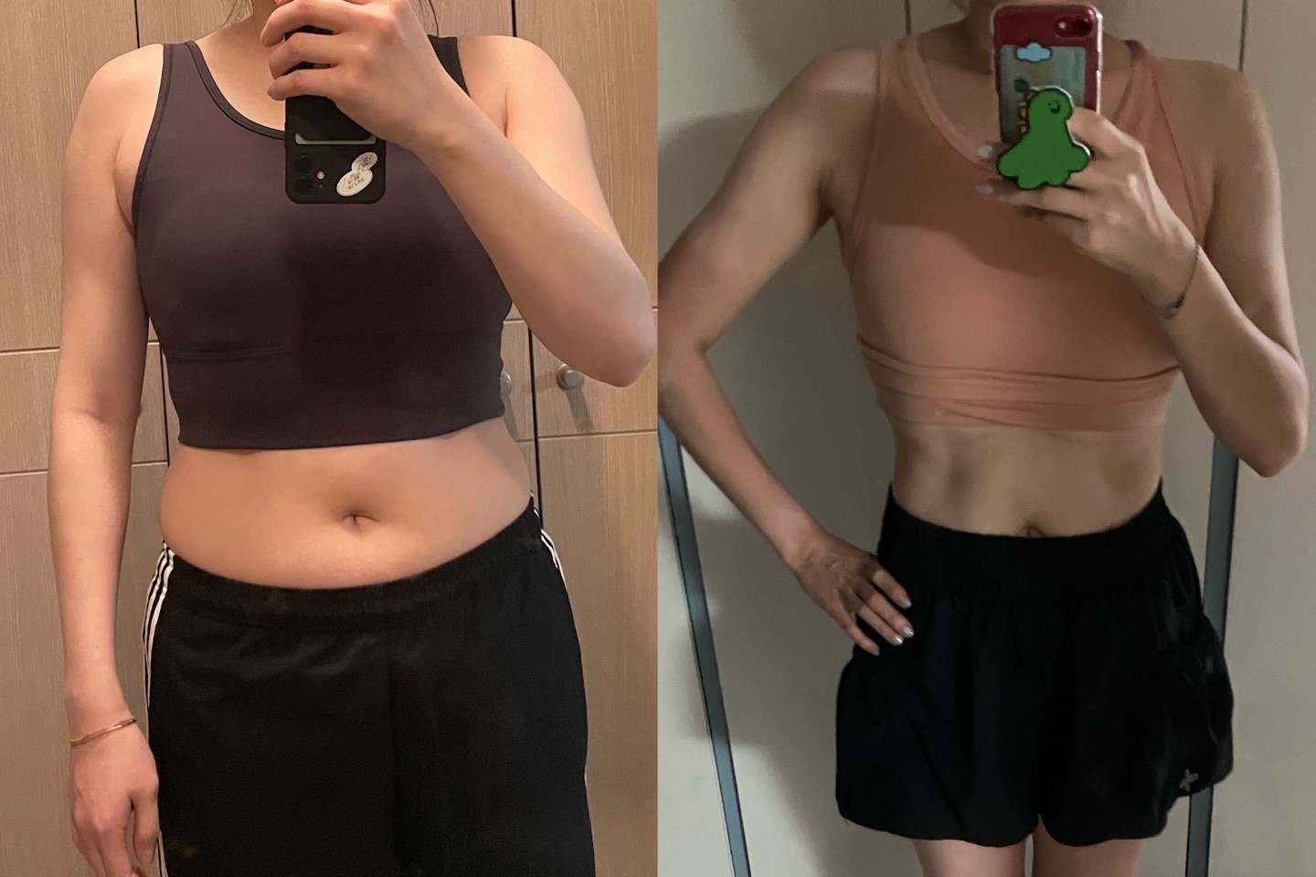 할 수 있는 운동이라곤 맨몸 운동 뿐이어서 변화가 적었어요 ㅠ 수업으로 기구 배우면서 조금씩 근육이 생기고 있어서 좋아요 !