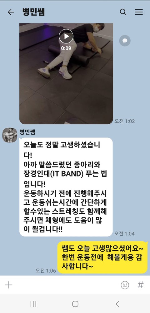 운동할 때도 병민쌤이 계속 화이팅 해주시고 마사지도 해주시고.. 정말 감사합니다ㅠ앞으로도 믿고갈게요
