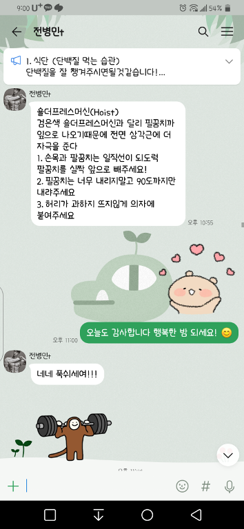 꾸준히가 답이다...라는 말씀 잊지않고 열심히 하고있습니다! 저에게 정말 감사한 존재이신 병민쌤 이렇게나마 감사함을 표현합니다ㅎㅎ 헬스장 놀러갈게용쌤♡