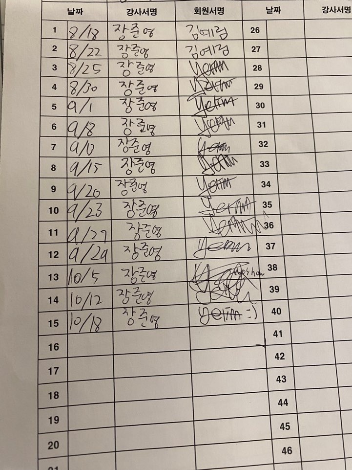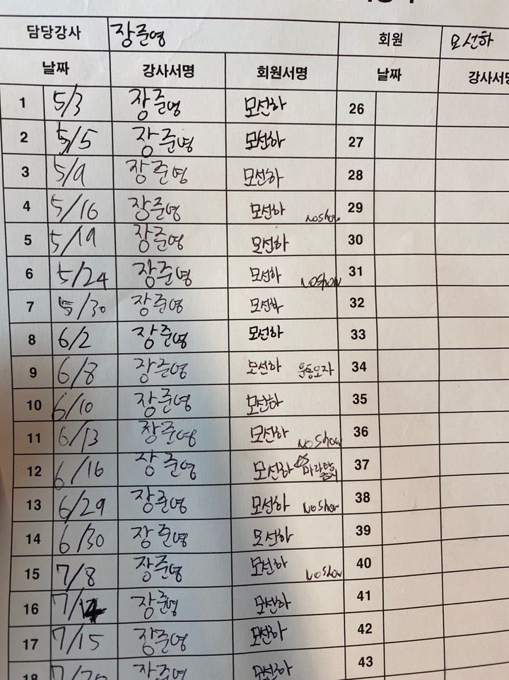 앞으로 남은것도 열심히 받고 재등록해서 쭉 받아볼 생각입니다.앞으로도 잘 이끌어 주세요^^근 2-3년간 여러 선생님께 티칭을 받아봤지만 저에게 딱 맞는 분은 장준영 선생님이셨어요. 매수업마다 타겟 부위를 정확하게 짚어주셔서 근육 생성률 20000% 입니다.