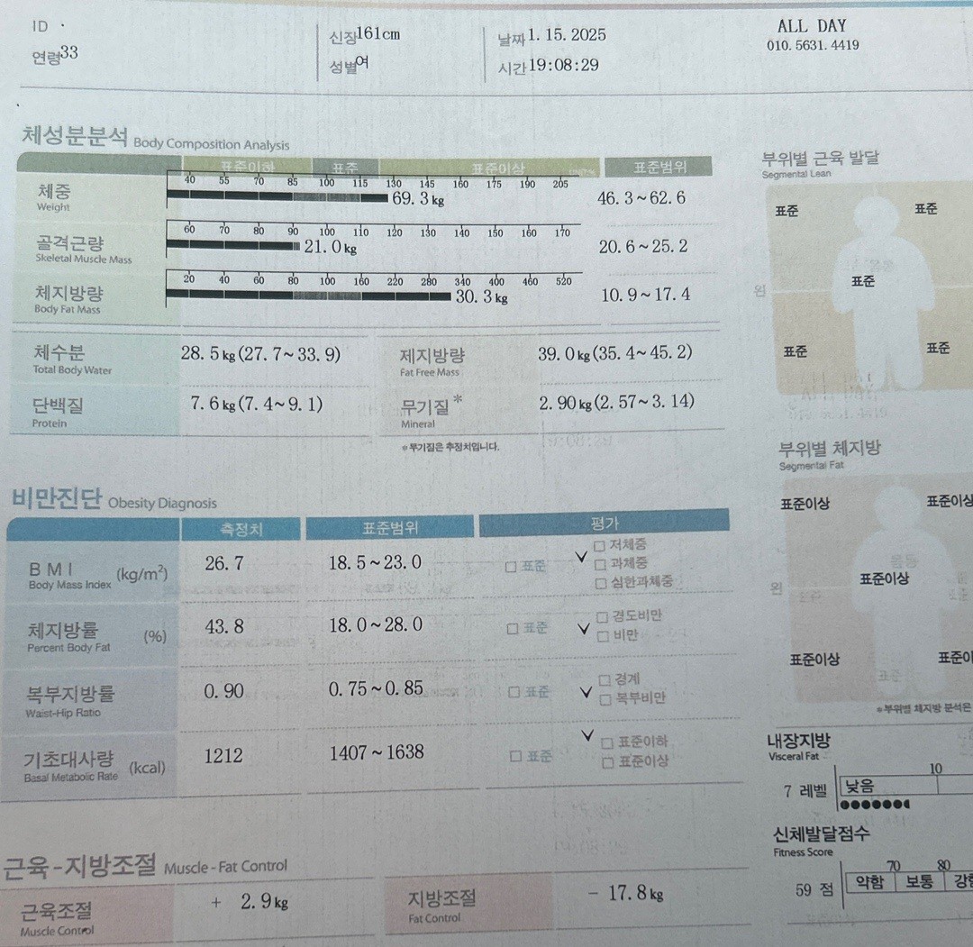 충격받아서 바로 알아보다가 올데이PT로 가게 되었습니다. 체중에 관심이 없어서 모르고 지내왔는데 생각보다 되게 적게 나가서 충격적이었어요. 6개월간 열심히 약 9kg정도 증량 성공했습니다!
