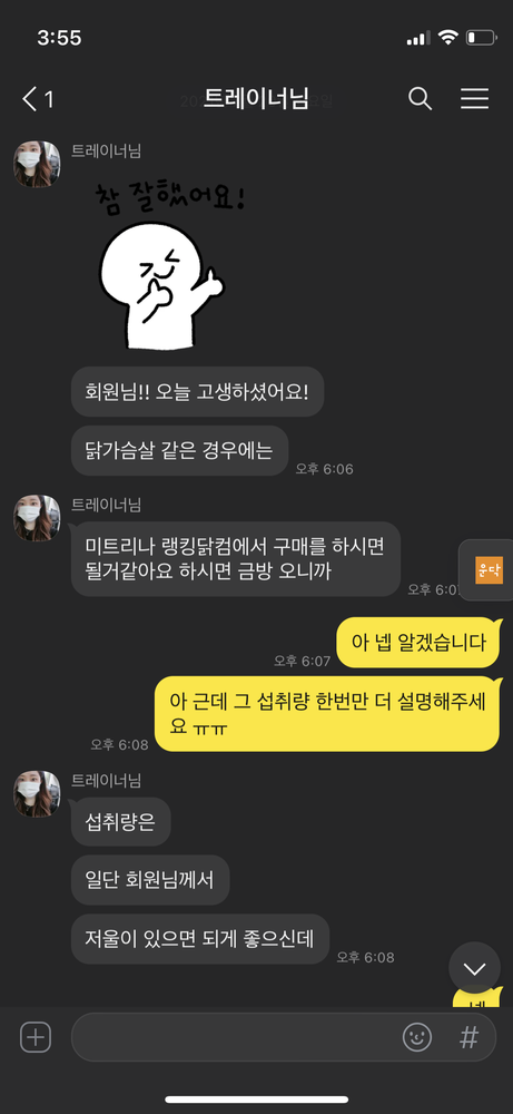 평소에 식단 관리도 해주셔서 간식이나 식사 추천도 받아서 식단 관리도 크게 스트레스 없었구요!