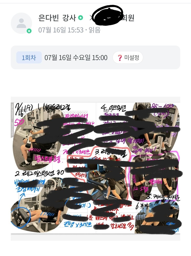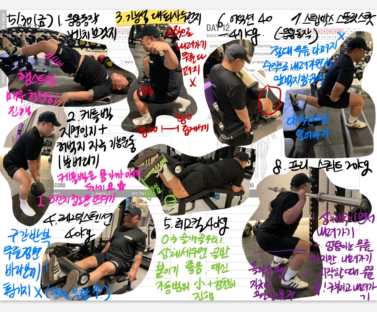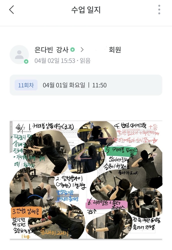 매 수업마다 자세 잘 잡아주고, 사진처럼 저렇게 운동 일지까지 챙겨주는 정성에 감동🥹