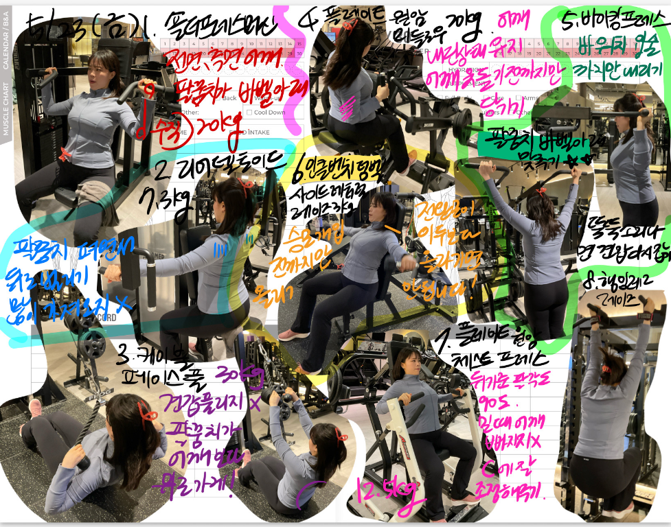 쌤 쉬는 시간에도 막 촬영 꿀팁도 알려주셔서 덕분에 자신감있게 웨딩촬영 즐겁게 하구 왔어요~ 늘 친절하고 운동 너무 잘 가르쳐주시고 매 수업은 기록하고 유의사항 정리해서 보내주시니 너무 유용합니다! 고민 말고 상담 예약해보세요~수업도 잘해주시고 제 몸 상태도 잘 봐주셔서서 만족스러운 수업이었습니다! 뿐만 아니라 이렇게 기록도 잘해주셔서 아주 굳굳!!! 혼자 운동할 때도 참고하기 딱입니다 ㅜㅜ 여자 분이라서 과감한 터치 가능이 제일 좋아요👍천천히,하지만 꾸준하게