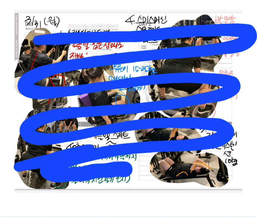 그리고 운동 배울때마다 일지에 운동방법과 주의사항 등을 상세히 적어주셔서 혼자서 운동하는게 두렵지 않아요😆다빈 선생님과 30회차 수업 중입니다