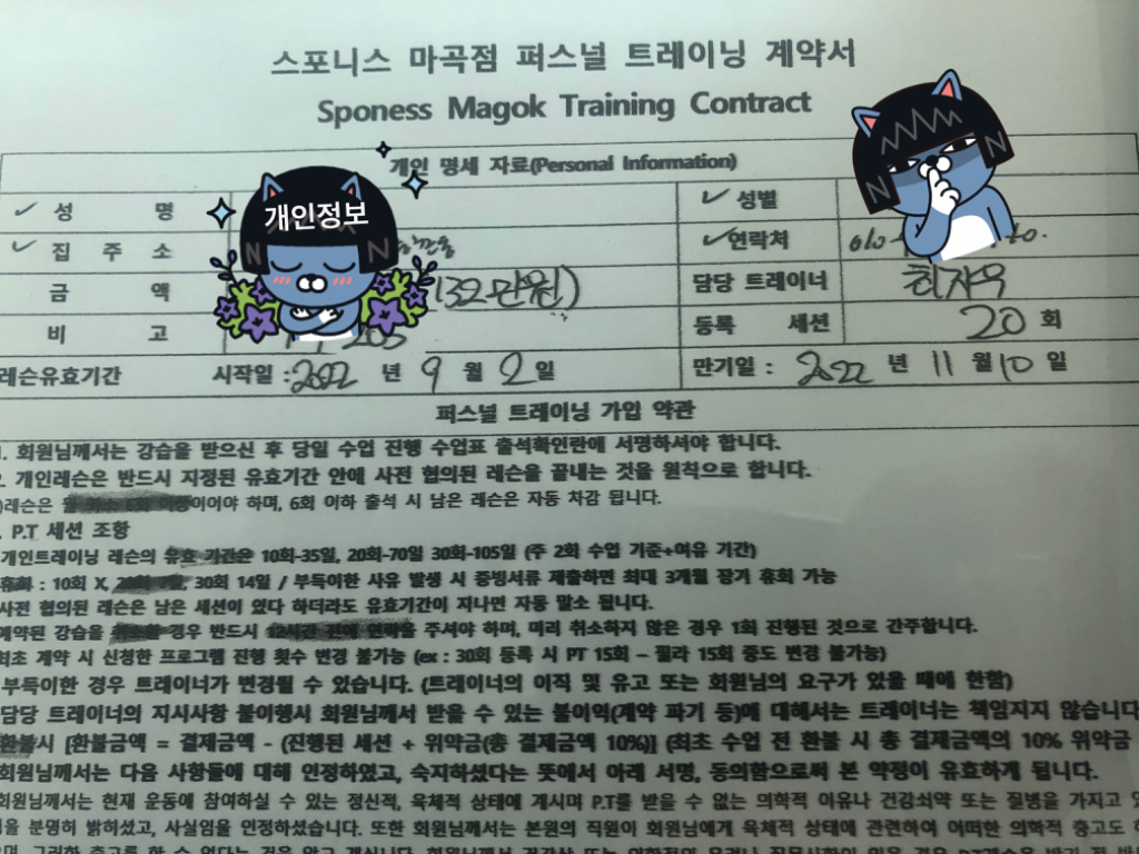 저는 성격이 워낙 까탈스러워서 피티 상담만 10번정도를 받고 결국 지우쌤과 함께 하기로 결정했습니다 =)