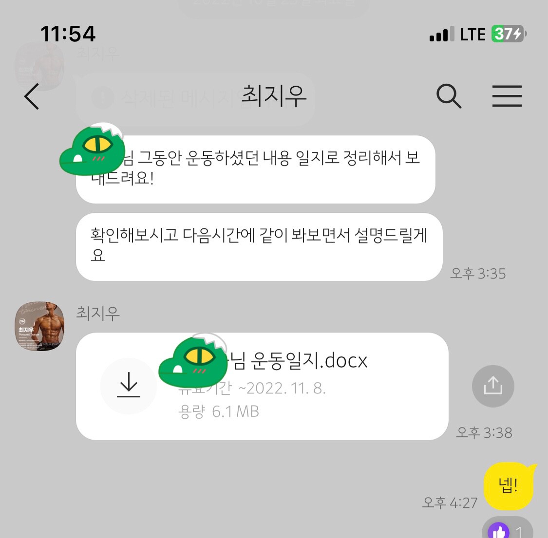 운동 끝나고 나서 하루 배운 운동영상들 다 카톡으로 보내주시고 정리해주셔서 혼자 운동할때도 너무 도움되고 만족스럽습니다