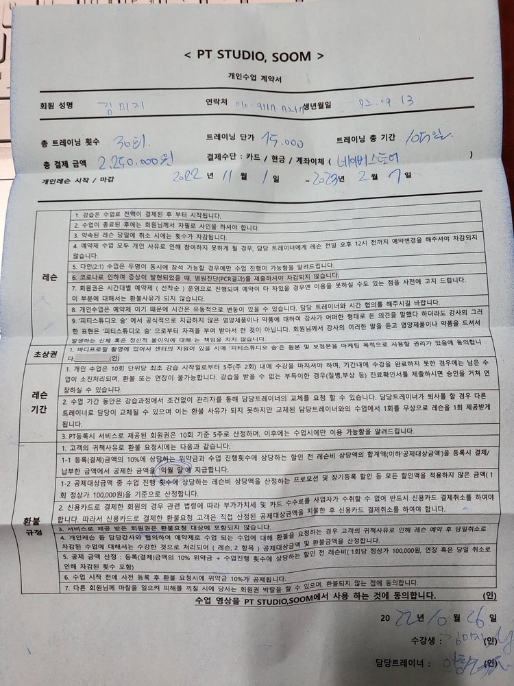 진짜 마지막 피티다라는 마음으로 엄청 알아보고 비교하고 체험 PT도 받아보고 신중히결정했어요