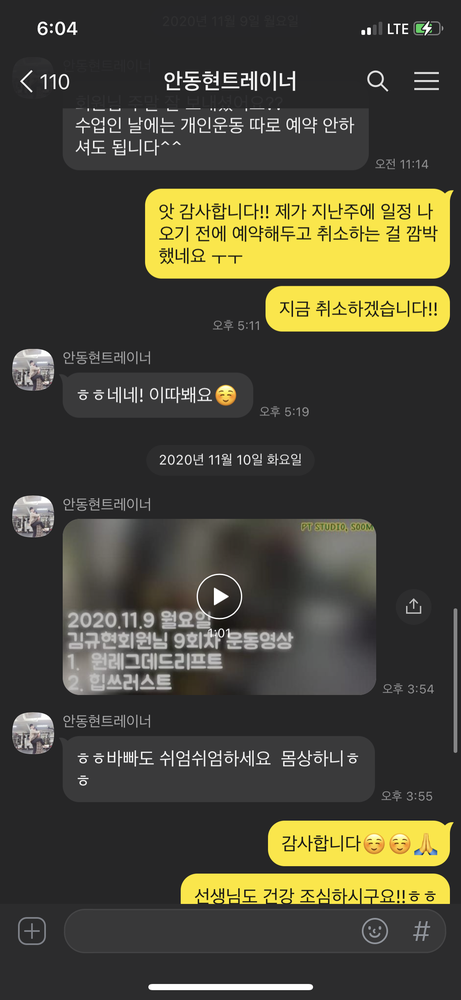 운동 내용도 동영상으로 찍어 저에게 보내주니