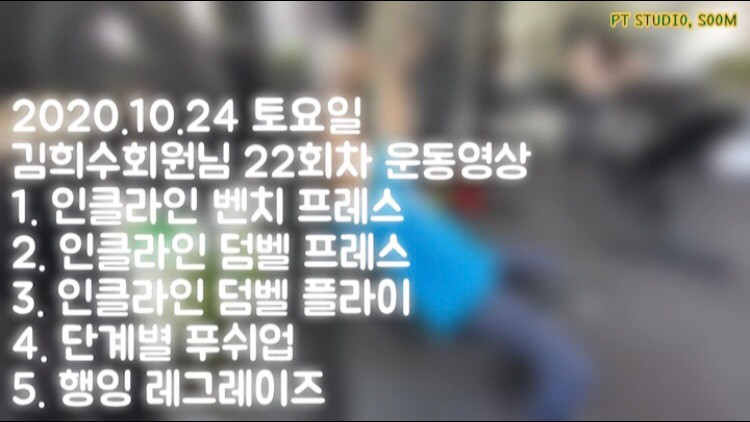 2. 영상 피드백: 피티를 받아도 다음날이면 까먹기 쉬운데 수업 받는 제 모습이 요약된 영상처럼 남아서 복습하기 수월했어요ㅎㅎ 몇회 몇세트를 했는지 영상에 같이 적어주셔도 좋을 것 같아요!