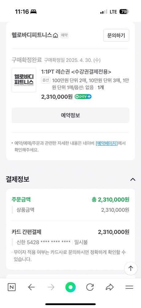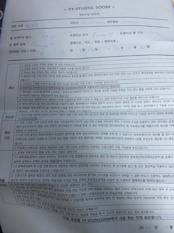 몇회 수강한지 얼마지나지않아, 다른데서 피티를 몇번 받아봤는데 다른 선생님한테 썼던 돈이 아깝다는 생각이 들었어요