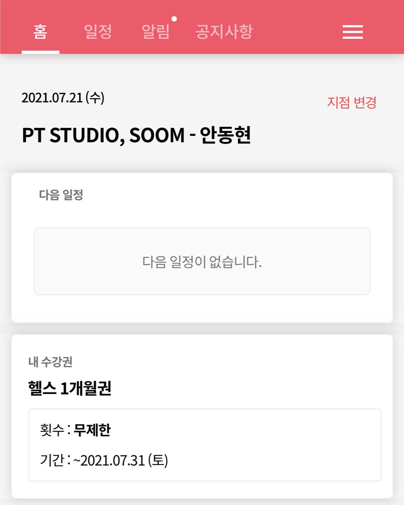 관리 시스템도 잘 되어있고 일반 헬스장보다 좀더 확실하게ㅈ 관리 받는 느낌이 들어 강력 추천합니다.! 혼자서도 운동할 수 있는 그날이 얼른 오기를 !! ㅋㅋㅋ👍👍👍👍