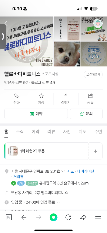 연남동에서 매일 새벽 인천 송도로 PT를 다닐만큼 진심이었는데 가장 가까운 곳에 이런 곳이 있었네요. 저는 100회권 결제하고 운동하고 있습니다. 자신있게 추천드립니다!선생님도 친절하시고 시설도 좋아서 운동하기 딱 좋습니다~ 진짜 피티다운 피티 찾으시는 분들에게 강추합니다!다른 헬스장에서 받는 PT랑은 확실히 다르게 관리도 잘 해주시고 운동의 재미를 알게 해주십니다! 혼자 운동할때도 무슨운동을 해야되는지 계속 알려주셔서 이젠 스스로도 무슨 운동을 어떻게 해야될지 점점 틀이 잡혀가는 느낌이 들어서 좋습니다!헬스장도 여러군데 다녀본 사람으로 의지가 부족해서 운동을 못하다가 PT를 받으려고 집 가까운곳을 알아봤는데 가까운곳에서 이런 선생님을 만날 수 있다니 운이 좋았습니당 전문적으로 운동 자립할 수 있게 가르쳐주셔서 체력이 늘고있다는게 느껴져요!! 체형 교정도 되고 운동도 되고 40회 끊고 꾸준히 하고 있습니당 혼자 운동할수 있게 수업때 한거 다 따로 올려주셔서 개인운동하기도 편하고 넘 좋아요!!체험 수업받고 만족해서 30회 끊고 다니고 있어요지금 10회 정도 개인PT 받았고 육아때문에 지친 체력 끌어올리기 목표였는데 스트레칭도 봐주시고 체력도 많이 올라왔어요!