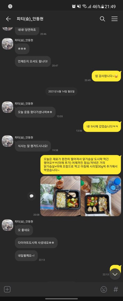 또 선생님 덕분에 기존 식사량이 많이 부족했다는 걸 알게 됐어요. 운동하면 생각보다 더 많이 먹어야 하더라구요…. 식단에 대한 피드백도 단순히 이거, 저거 이만큼 드세요 하시는 게 아니라 제 기존 식사 패턴을 가져가되 어떻게 하면 더 나아질 수 있는지를 알려 주셔서 정말 좋았습니다!