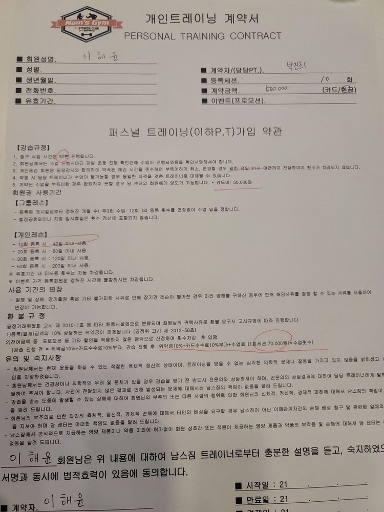 친절하게 상담해주신 진희쌤 덕분에 같이 운동하기로 결심했습니다