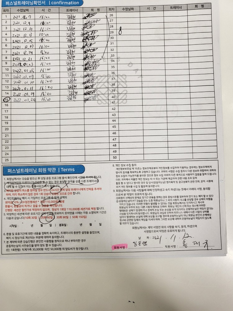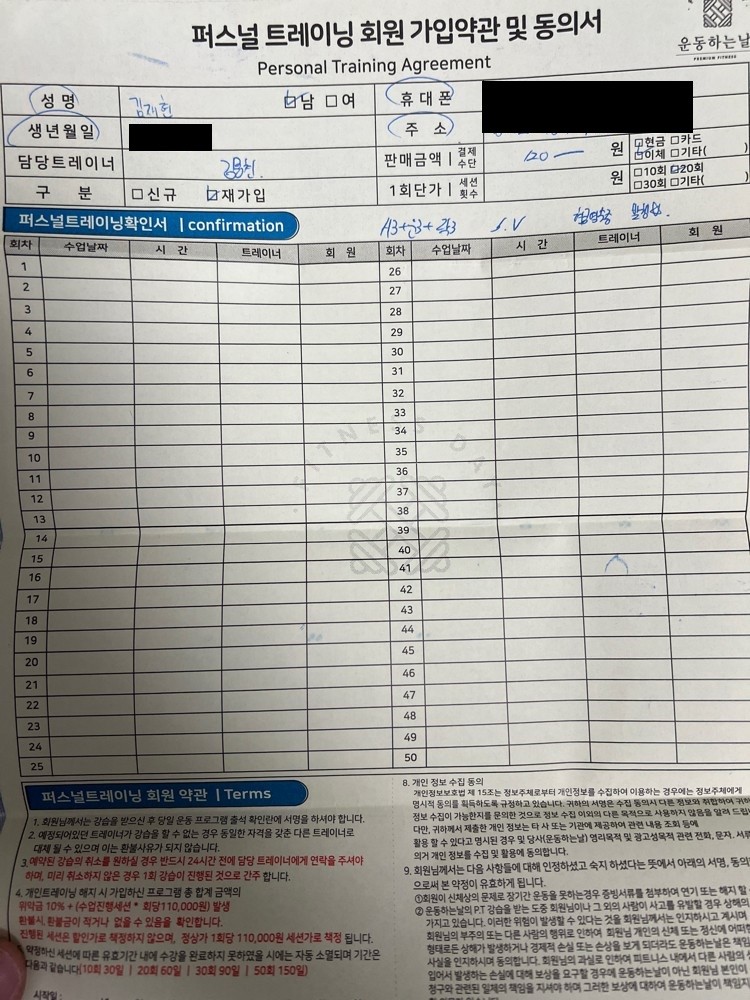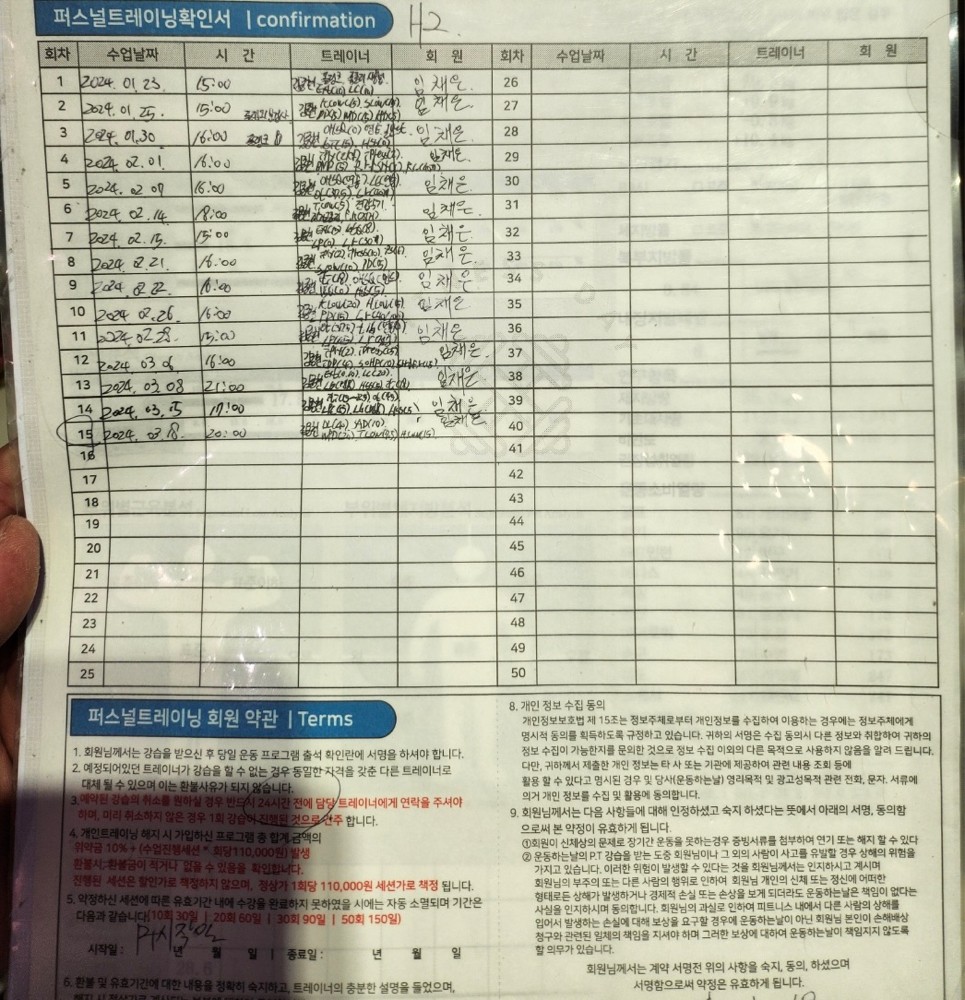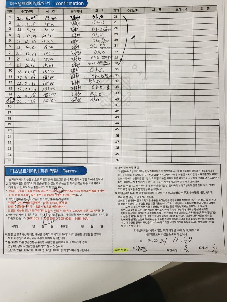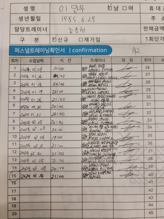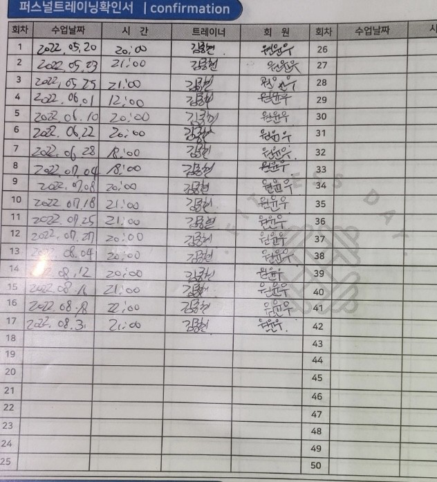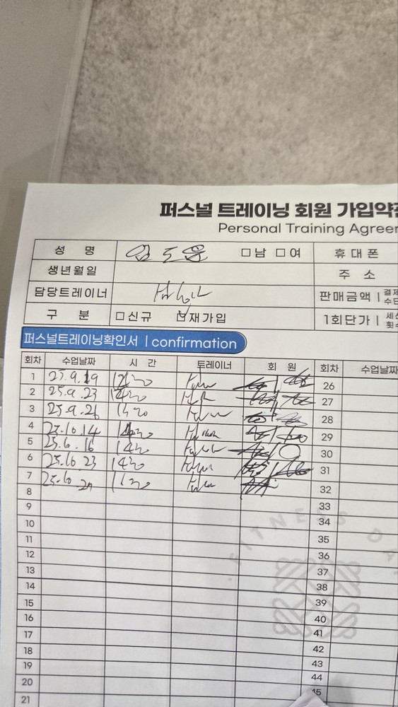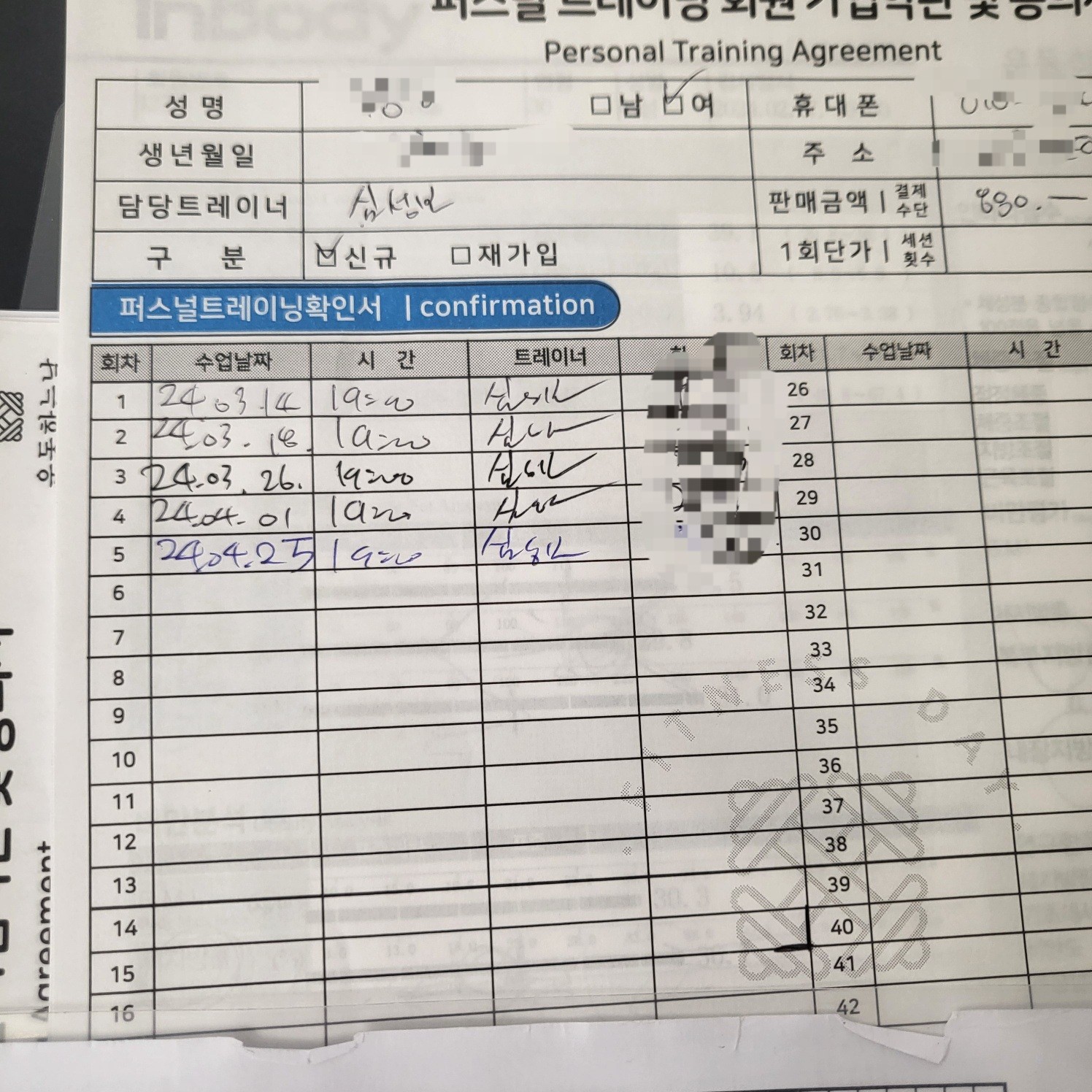 다른 곳에서 피티를 받았을 땐, 제가 수업 중간중간 기록하긴 했지만 수업 받다보면 놓칠때도 있고 기록하기 힘들어서 그냥 안하게 되더라구요