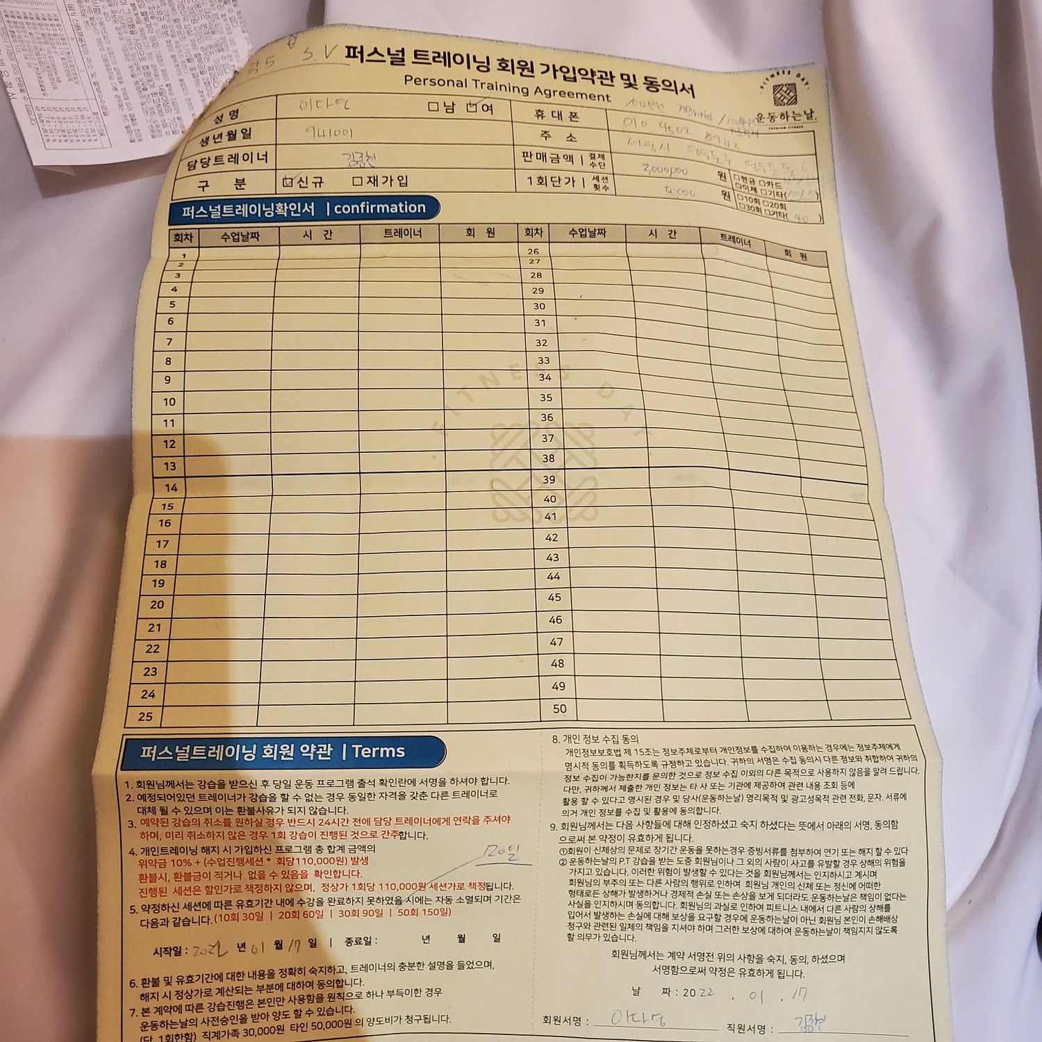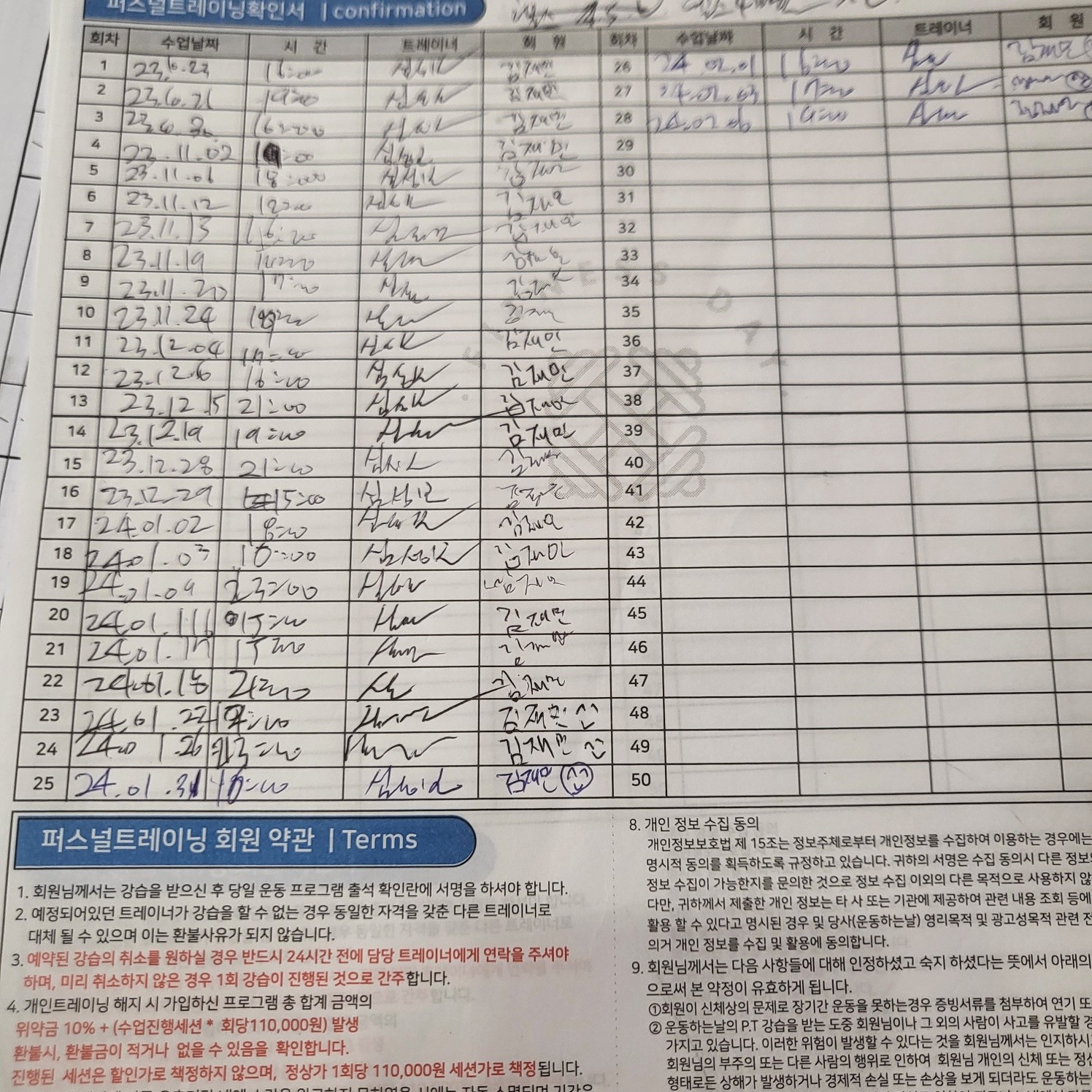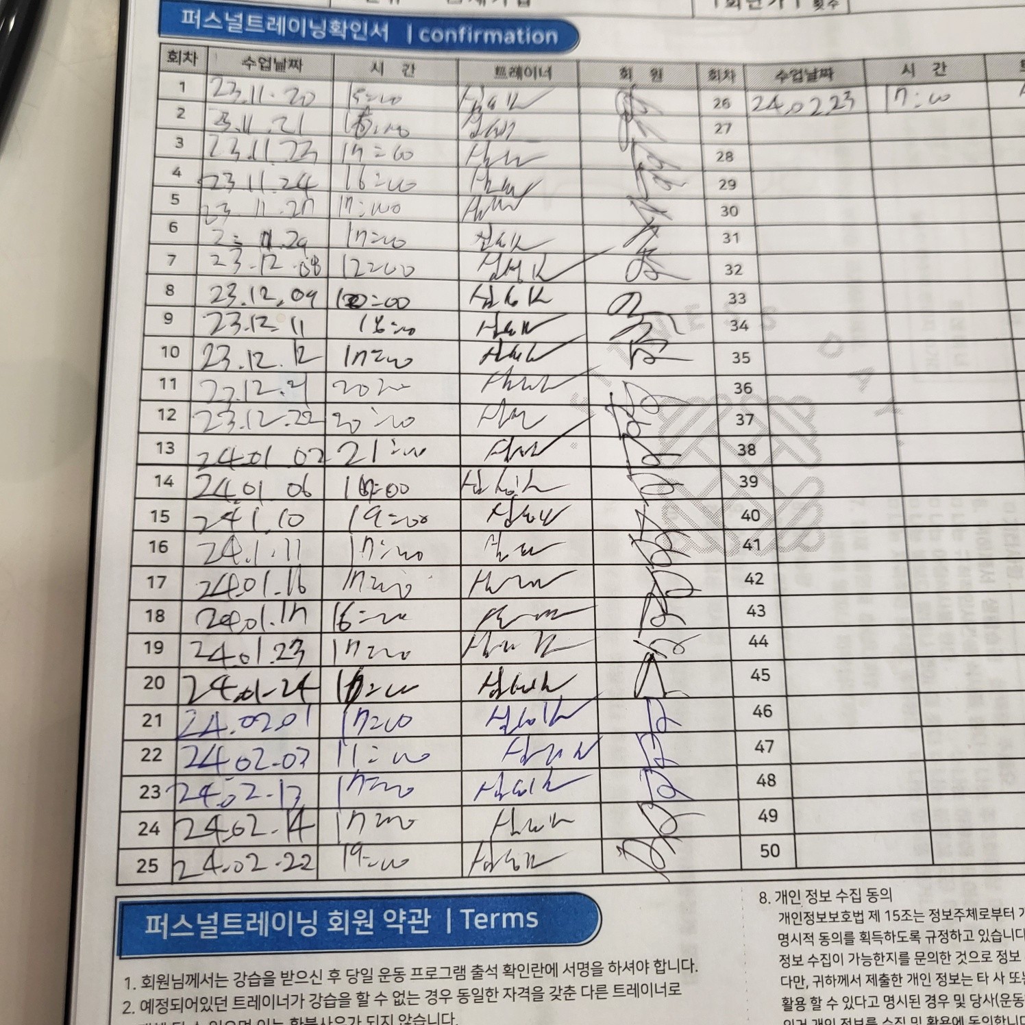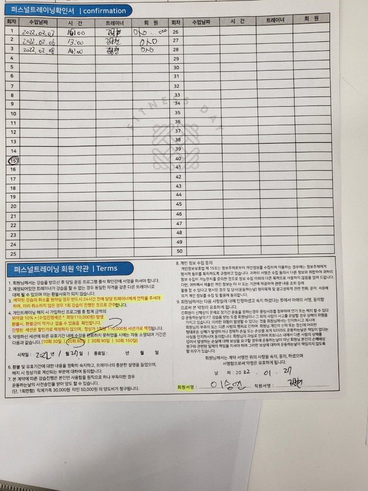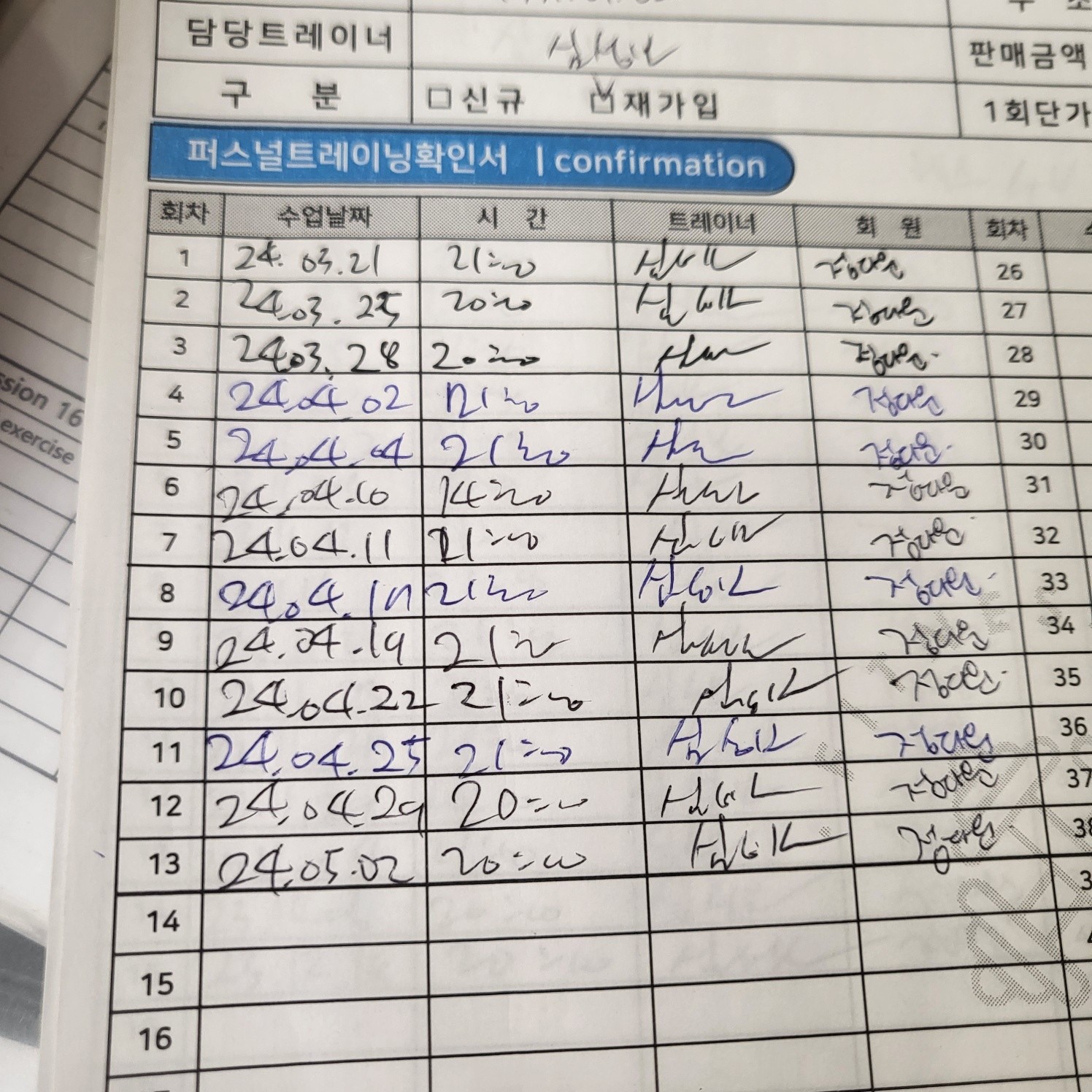 다른 곳에서 피티를 받았을 땐, 제가 수업 중간중간 기록하긴 했지만 수업 받다보면 놓칠때도 있고 기록하기 힘들어서 그냥 안하게 되더라구요