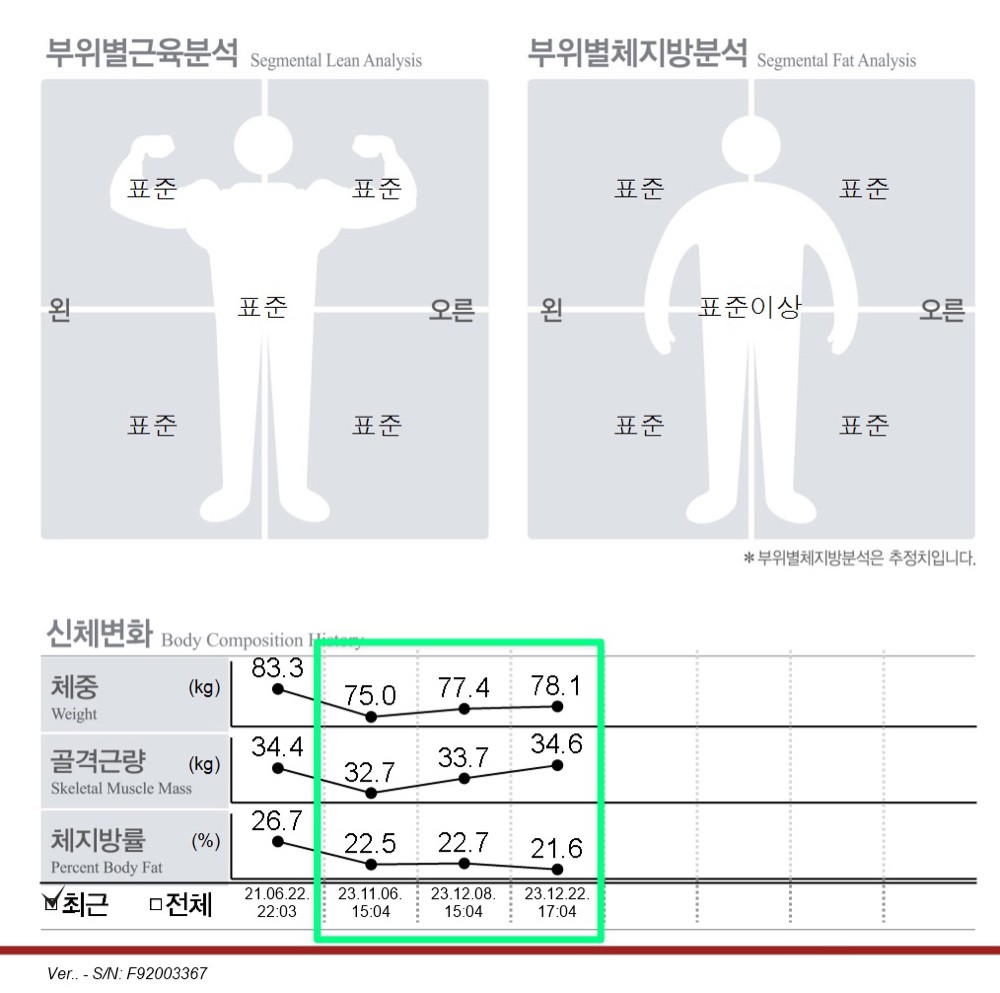 체지방률 27퍼에서 18퍼로 바프 찍기까지 정말 너무너무 잘 챙겨주시고 운동도 잘 알려주시는 쌤 ㅠ 운동 시작 전에 무릎이 너무 아파서 걷기만 해도 아팠는데 지금은 스쿼트 55키로 합니다 ㅋㅋㅋ 바프끝나고 살도 안찌고 잘 유지중이고요 폭식 이런것도 없습니다 심지어 운동이 너무 좋아져서 쉬라해도 주 6일 헬스장 출석 ..! 운동이 좋아지게 해주신 쌤 ,, 체형에 맞는 운동방법이랑 식사량까지 챙겨주셔서 근손실은 커녕 인생 최대 근육량까지 봤습니다 이제 바프끝나서 부족한 가슴운동이나 보완점 강화 운동 중인데 너무 만족합니다