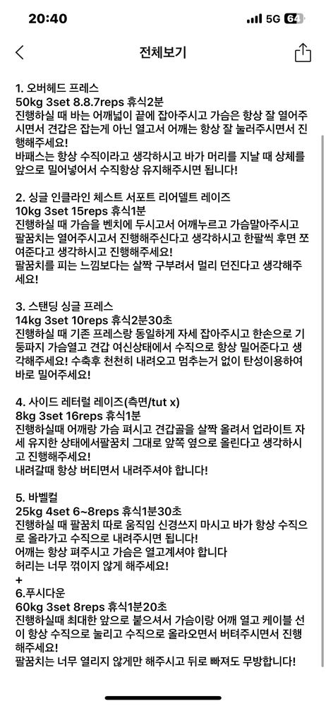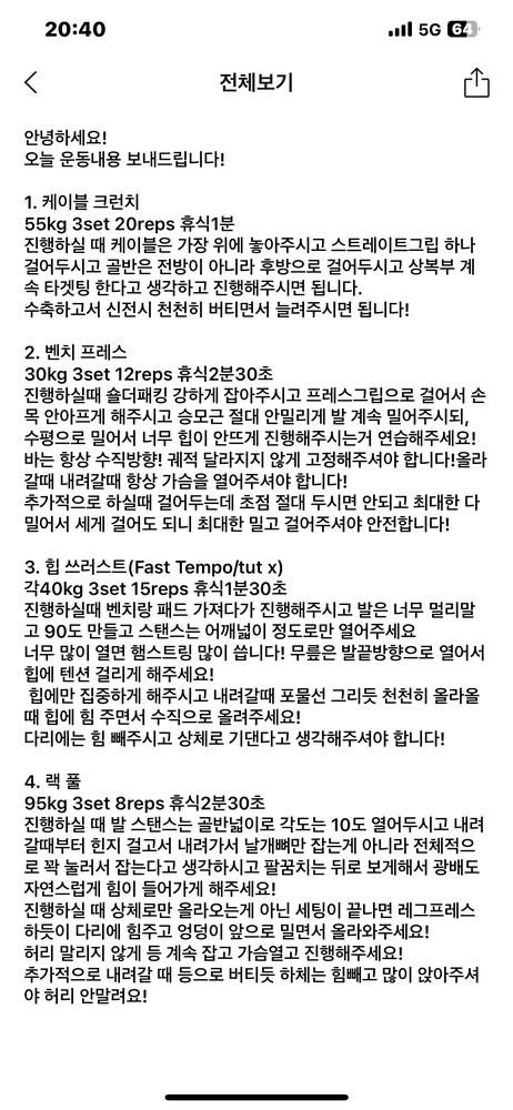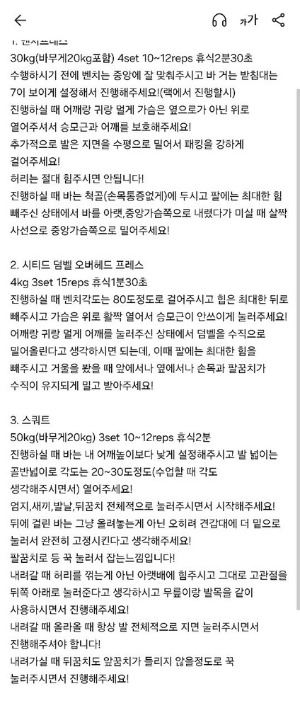운동 끝나면 그날 햇던 운동들 상세히 정리해주셔서 , 혼자 운동할때도 조금 더 자세 신경써서