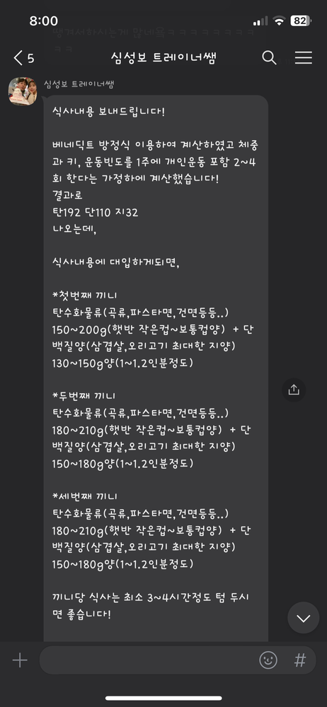 선생님이 짜주신 식단을 처음 봤을 땐 이걸 다 먹고도 살이 빠진다고? 싶을 정도로 양이 꽤 많아요.성보쌤한테 피티 46번 받은 사람 후기입니다 ㅎ
