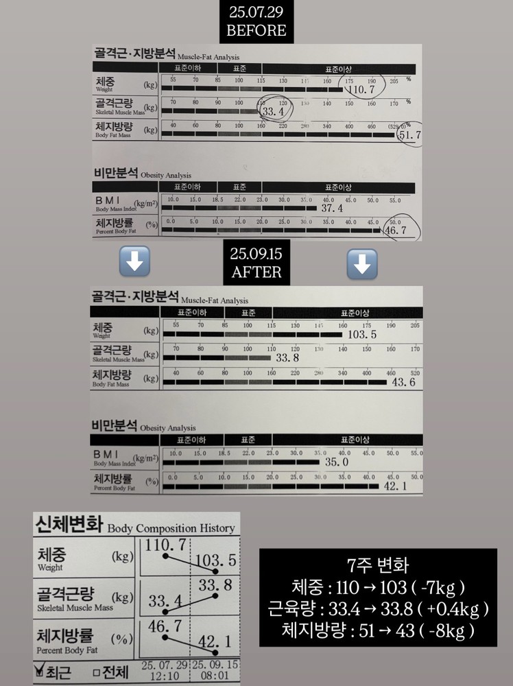 운동이 처음이라 걱정을 많이 했는데 제 문제점을 잘 파악해주셔서 원하는 체형으로 갈 수 있게 찰떡같이 잘 가르쳐주셔서 재미있게 운동 배울 수 있었어요 ! 처음에 스쿼트도 못했는데 시간 지날수록 스쿼트 되는 것도 신기했고 저는 체지방 감소가 목표였는데근육량은 유지하고 체지방만 쭉 빠졌어요 🤭 피티 하는 날만 관리해주시는게 아니라 개인운동 하러 나올 때도 자세 봐주시기도 하고 계속 관리해주셔서 너무 감사했습니당 운동이 재밌다는 걸 처음 알게 됐어요 🥹 이게 제일 뿌듯한 것 같아요 제 몸이 변하는게 느껴지니까 운동도 꾸준히 나오게 되고 인바디 재는 게 기대가 되더라고요 피티 18회 먼저 하고 저는 추가로 25회 더 받았는데진짜로 돈이 하나도 안 아까웠어요 ! 주변에 헬스장 많아서 고민되면 용수쌤한테 가세요 !