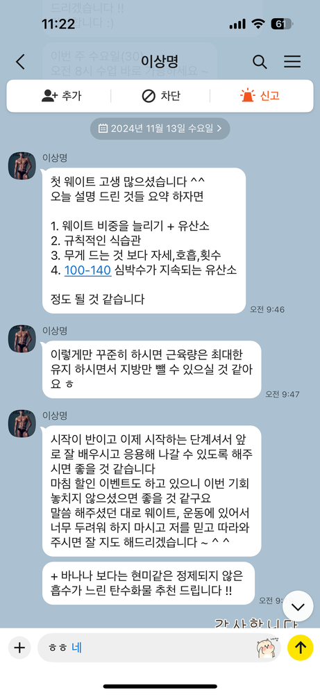정말 만족스러웠고, 앞으로도 꾸준히 운동할께요. 쌤 감사합니다!