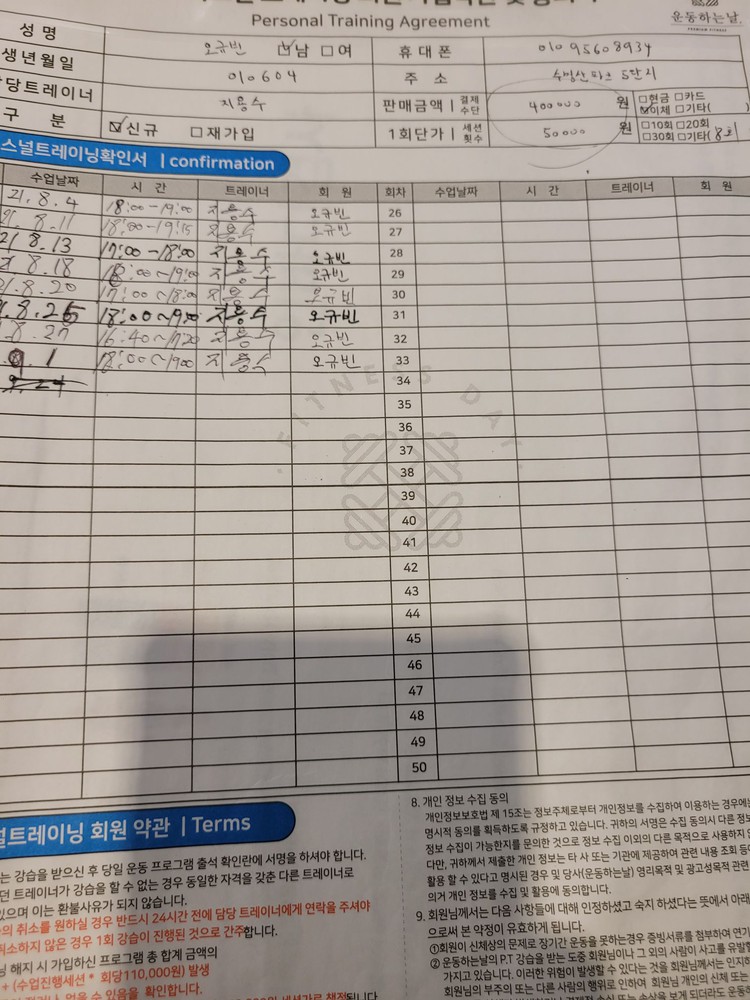 또한 부위별로 어떤 운동을 해야할지 여러가지 바리에이션별로 자세히 설명해주시기 때문에 나중에 자율운동할 때에도 pt때처럼 운동이 잘 될수 있었습니다.