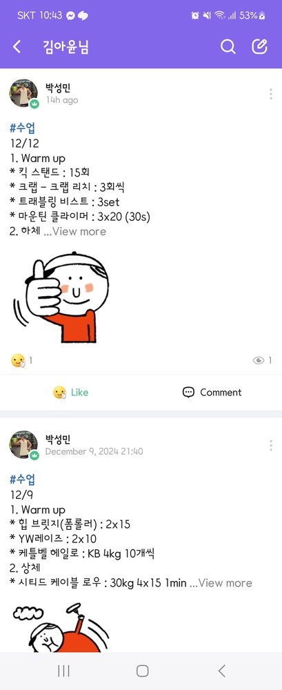 끝나고 나면 힘들어도 뿌듯한거같아요 허민영 트레이너님 최고 💜