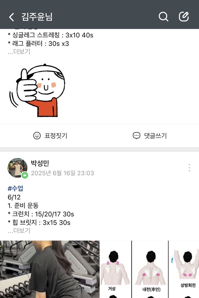 무엇보다 정말 운동을 좋아하셔서 제가 배우면서도 너무너무 신이납니당 👍 더 열심히해서 여름에는 어깨 찣어보께요~~~