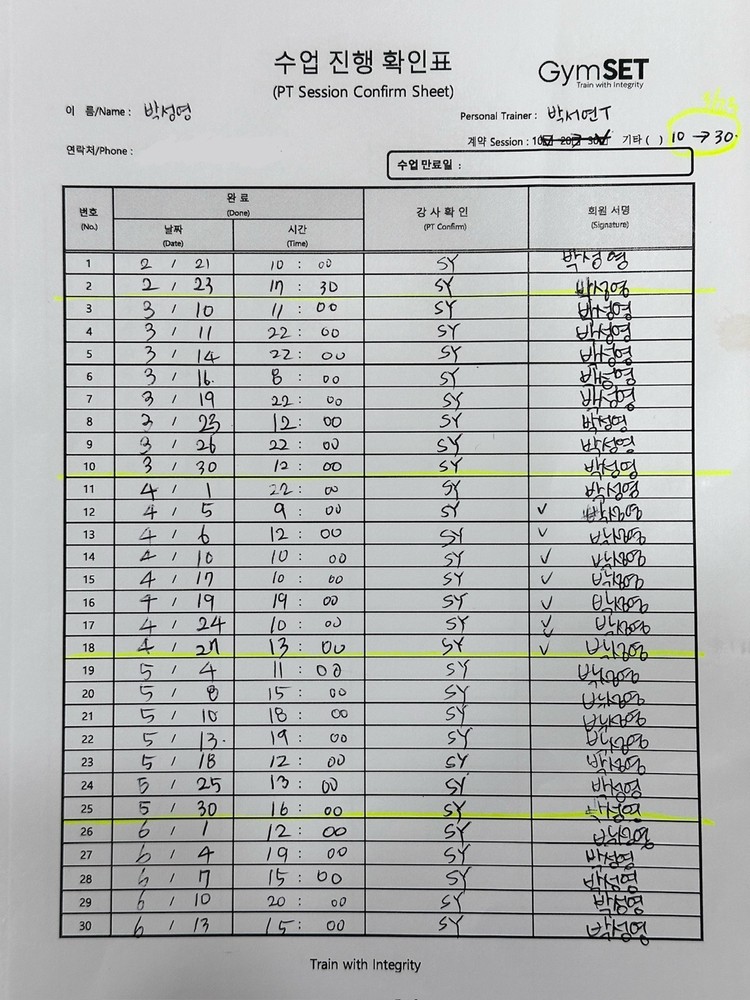 또한 수업이 없는 날에도 틈틈이 운동을 잘하고 있는지 챙겨봐 주셔서, 운동을 지금은 주에 4회 이상 갈 정도로 운동에 재미를 붙였습니다!