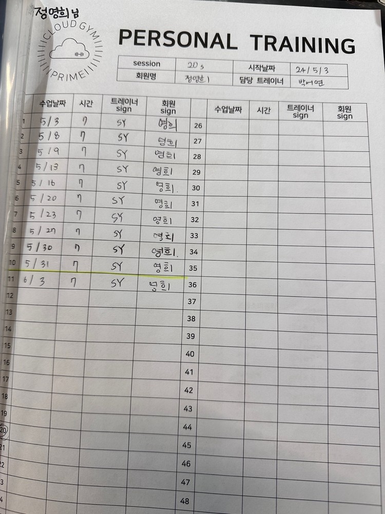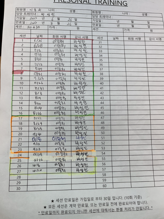 민영쌤이랑 운동 시작하고, 너무 좋아서 또 추가로 피티 등록했어요~*^^*