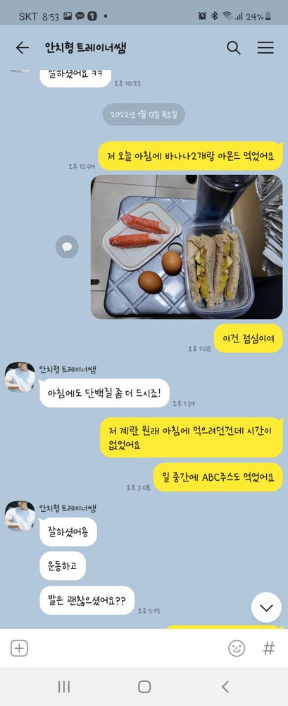 다이어트에도 관심이 있다고 상담을 하니 식단도 짜주시고